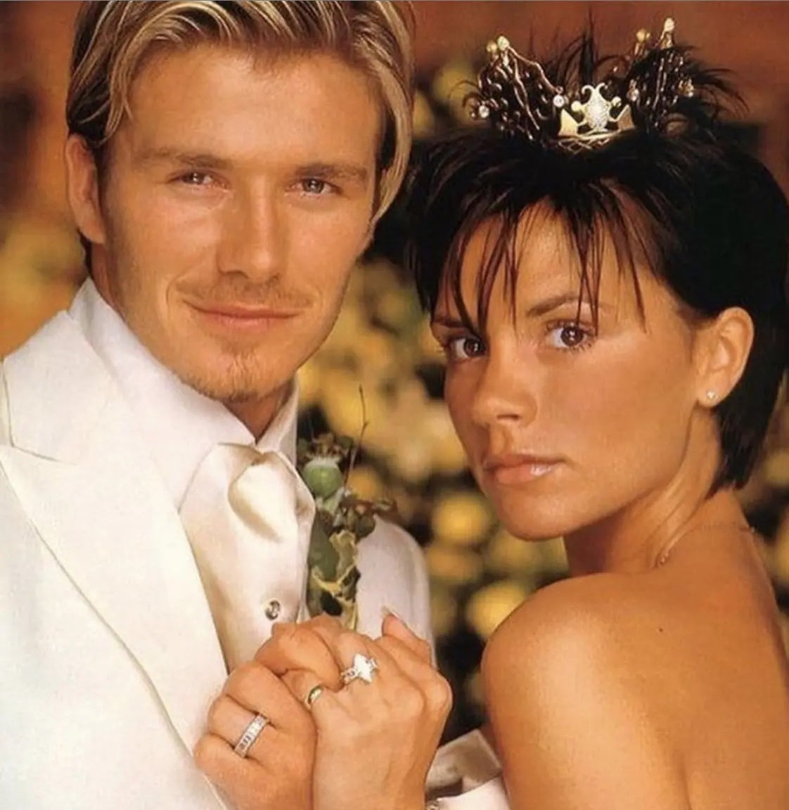 The Beckhams' July 1999 wedding at Luttrellstown Castle near Dublin, Ireland, was a grand affair. The evening sparkled with excitement, including in the couple cutting their cake in whimsical matching purple outfits. A quirky touch that perfectly encapsulated their unique style. And just like their matching ensembles, the floral arrangements were anything but ordinary. Victoria's stunning bouquet was a lush cascade of Ivy, vibrant Greens, and ripe red Tomatoes. While dazzling yellow Gerber Daisies decorated the castle. Their love has stood the test of time, the couple have four lovely children together.