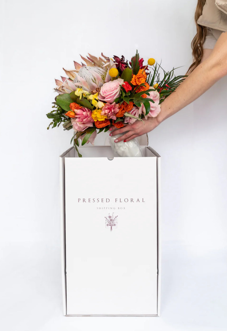 We totally understand that it's easy to procrastinate. The floral preservation process is a time sensitive matter, and although Pressed Floral can usually work with flowers within 5 days of the event, shipping circumstances that are out of our control and yours can happen! Your flowers arriving damaged or molded is more likely to happen with rushed, unprepared, and last minute flower shipments. Not to mention the stress it might bring you or your designated friend or family member who’s in charge of shipping after the big day!