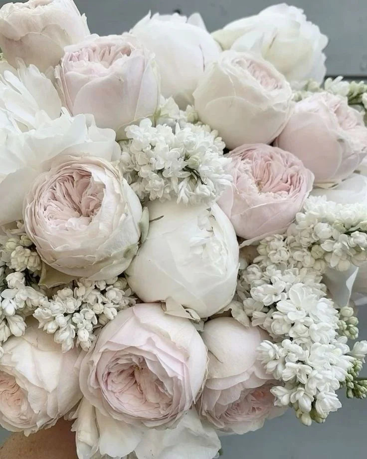 Inspired by the sparkle and fluff of freshly fallen snow and the beautiful quiet of a winter morning, lean into the softness of winter by embracing pastels, soft textures, and organic shapes with compliments of whimsical filler flowers. Ballet pinks and creamy whites.