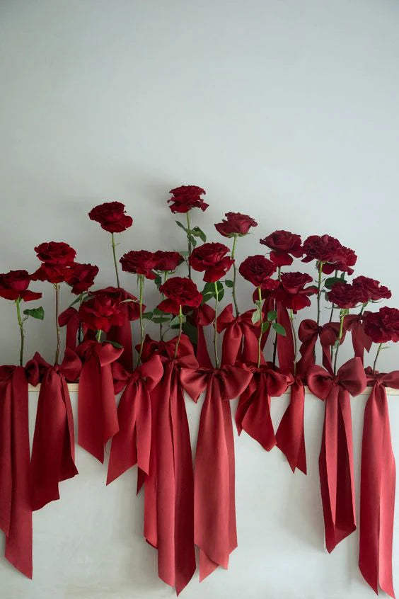 Utilize that holiday red to contrast against the cool tones of winter for a unique, color-pop winter wedding. Unique bridal-wear and subtle yet sharp silhouettes will balance perfectly with red to create a unique vibe. Flowers that we recommend for this aesthetic both fresh and pressed are: