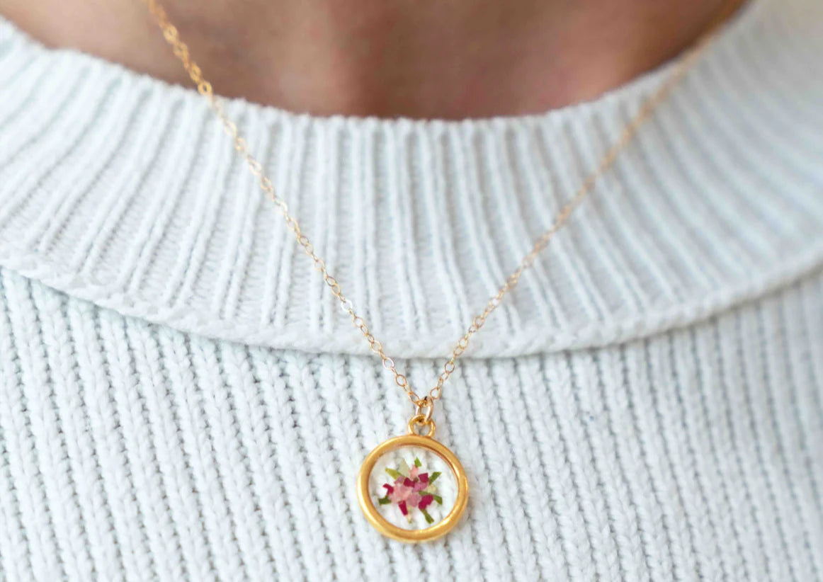 Send in a photo of your mom’s wedding bouquet or meaningful blooms and Pressed Floral will recreate it withrealfragments of flowers into a perfect pendant--So she can cherish, love and reminisce on the memories created on her wedding day.