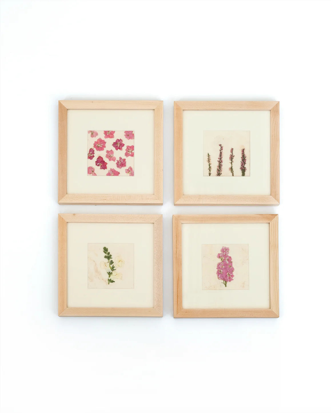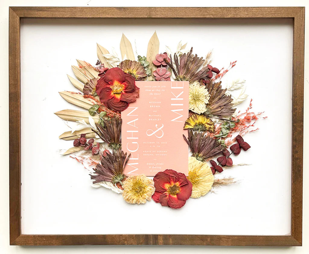 Want a set of frames to display your flowers? Our 8x10 or square single frames are perfect for using smaller pieces of your bouquet to create a cohesive art piece to display.
