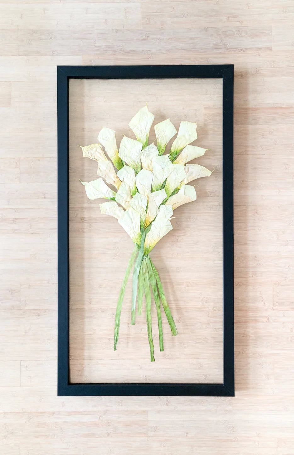 I bet you’d never think to design your bouquet based on the aesthetic of your home or the room it will be displayed in, but with this unique, new, and bespoke art, you have the chance to coordinate your flowers and frame for your home.