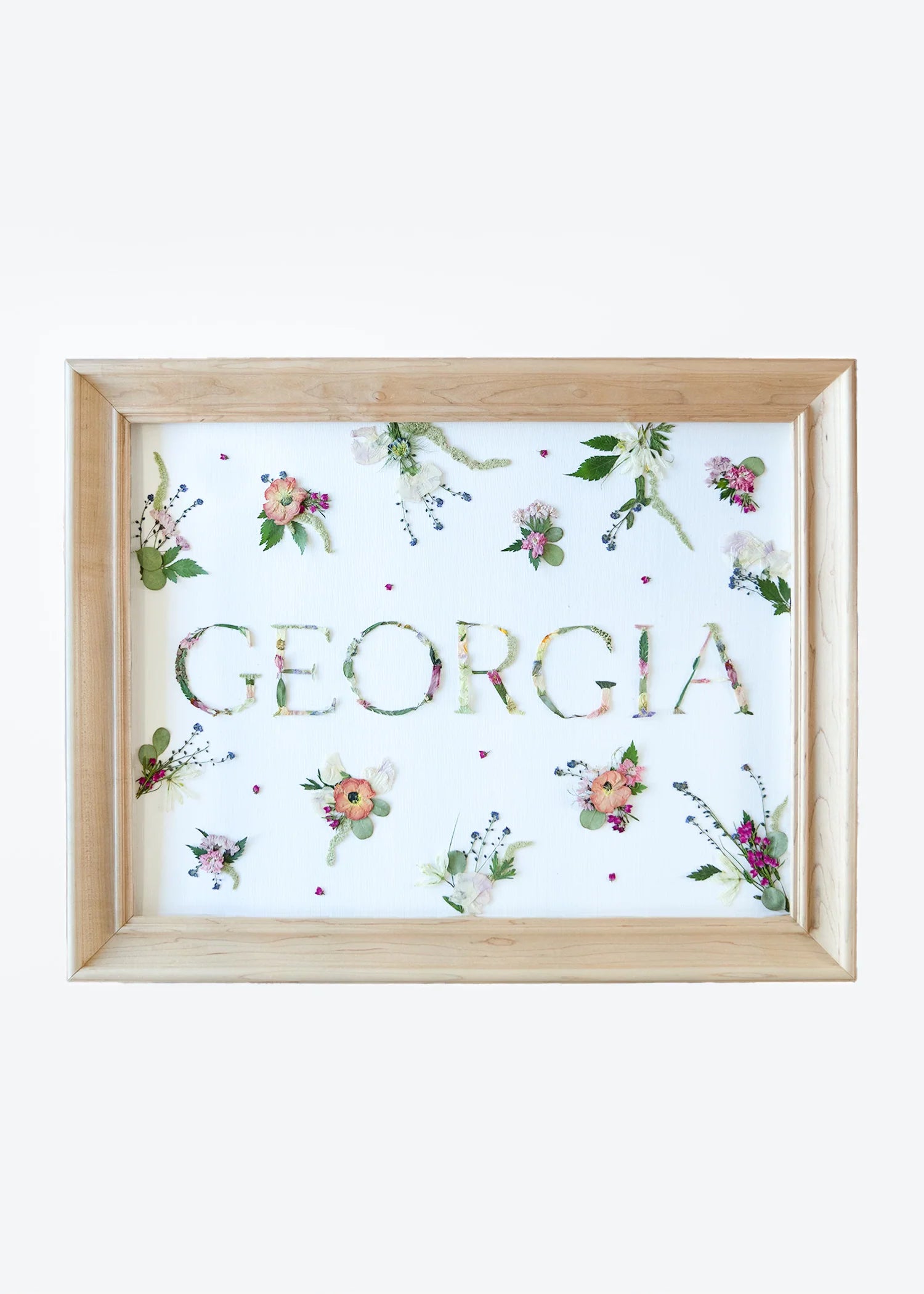 Looking for further customizations that require in-depth design or size? Pressed Floral is dedicated to making your frame yours. For additional costs, custom names, initials, or frame dimensions for longer stems are available. Any specifications will be honored to the best of our ability and within our parameters. For any questions regarding name design, or custom frame dimensions, [email protected].