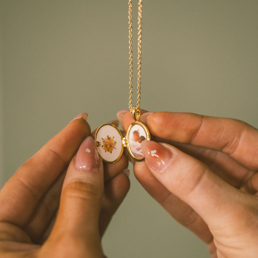 I love my locket!!! I never thought I could love a necklace so much but it truly is my favorite accessory!! With pieces of my bouquet and a picture of my husband and I on our wedding day, it makes the perfect keepsake from the best day of my life🩷